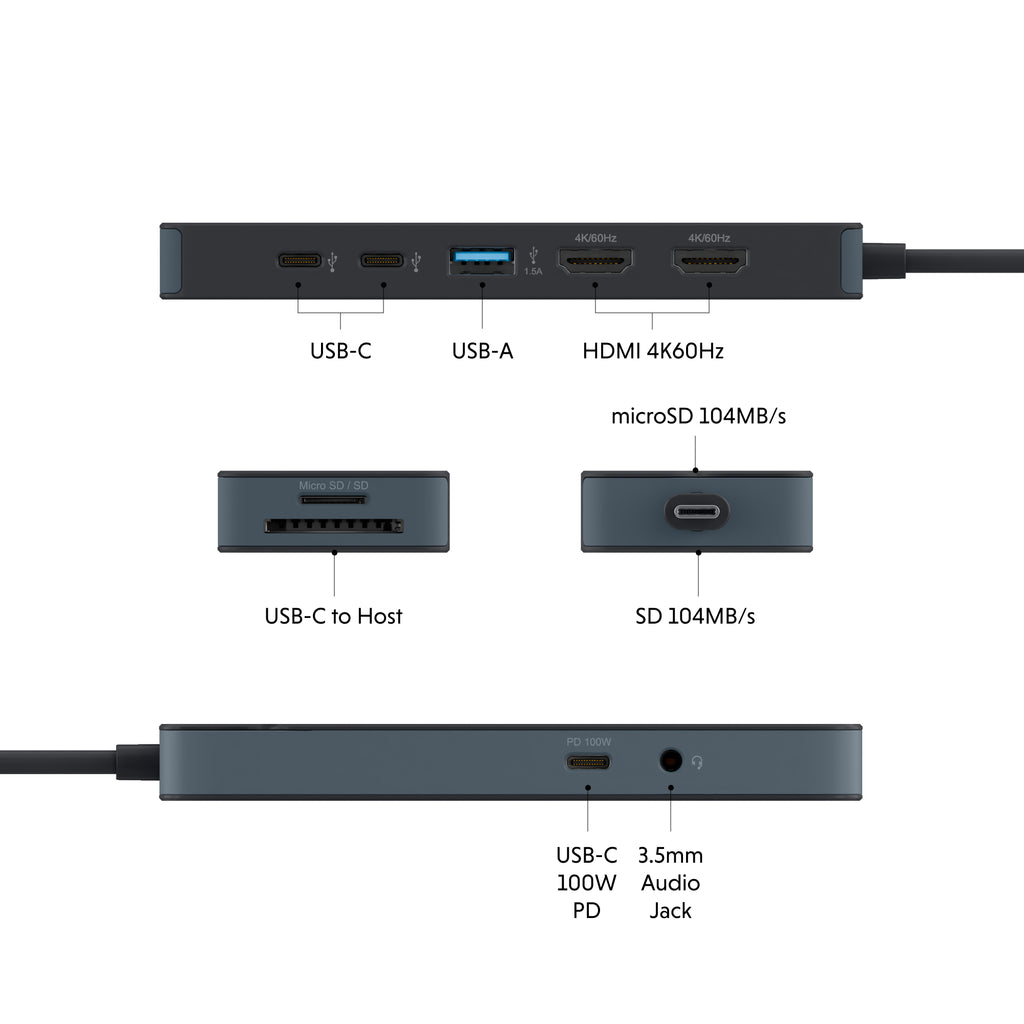 * Dual extended monitors require MST-enabled devices. 4K60Hz requires Dp Alt-Mode enabled USB-C ports on the host device.