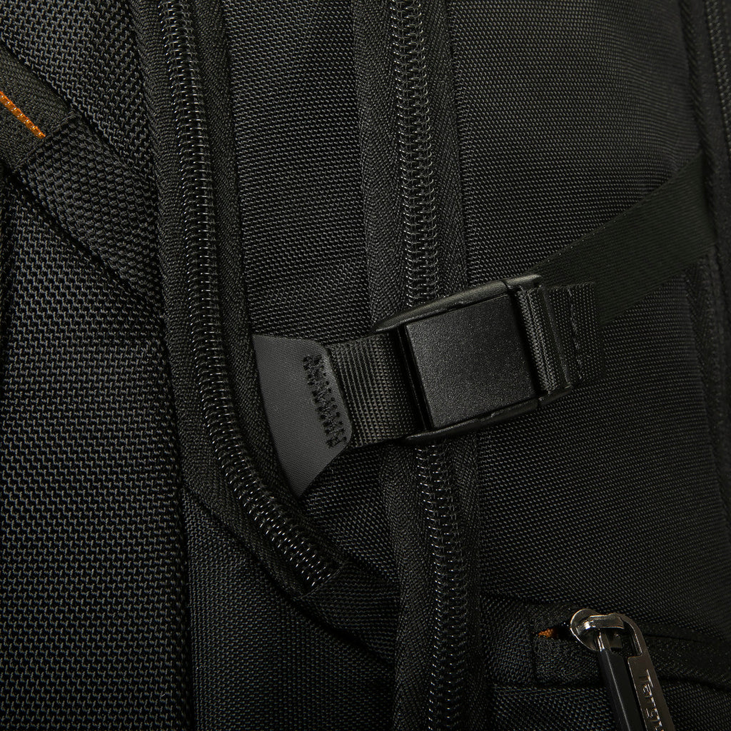 Comfort is key – particularly with a bag this size – and this backpack brings it with its ergonomic straps with a stabilizer webbing to ensure a snug, supportive fit for all-day wear. The cushioned top and bottom grab handles provide extra comfort for quick grabs or carrying in hand. Plus, the side compression straps help balance the load, making it easy to adjust and carry your belongings without strain.